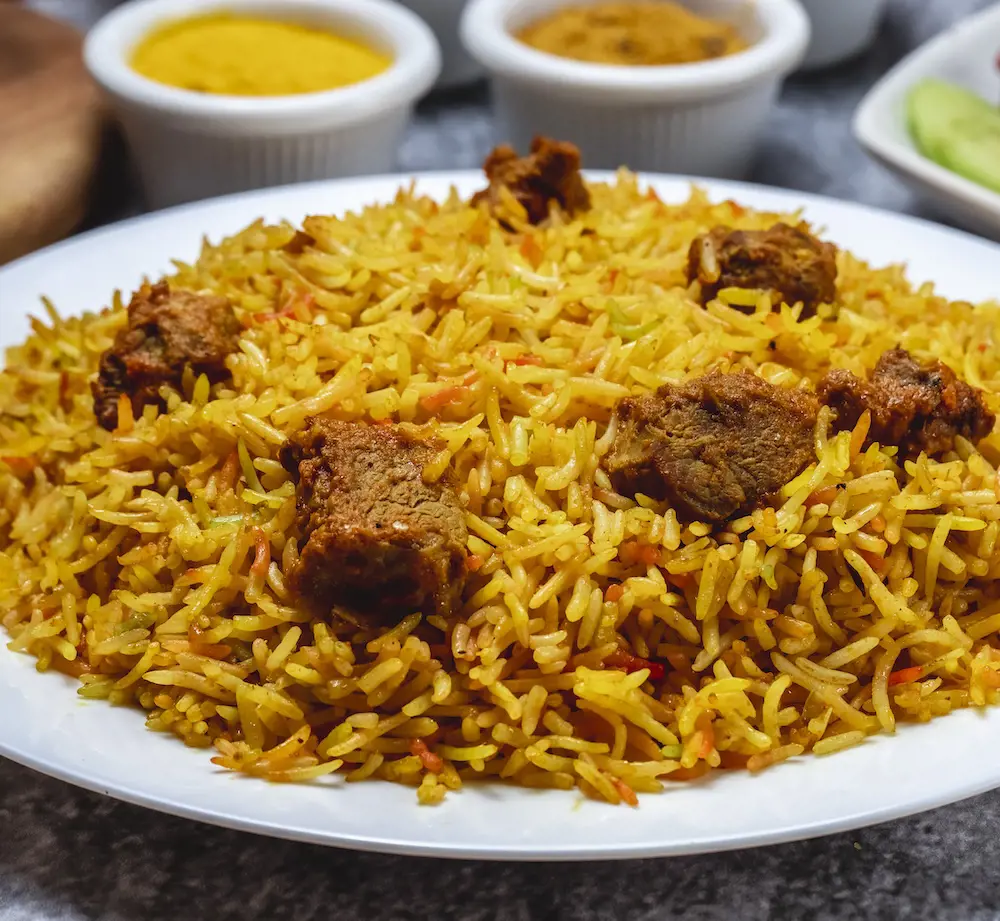 Chicken Biryani is an aromatic South Asian dish that brings flavorful Basmati rice, succulent chicken, and a blend of exquisite spices together. Each grain of rice absorbs the essence of saffron, ghee, and a melange of spices like cardamom, cloves, and cinnamon. The marinated chicken, once cooked, imparts its rich taste to the dish.