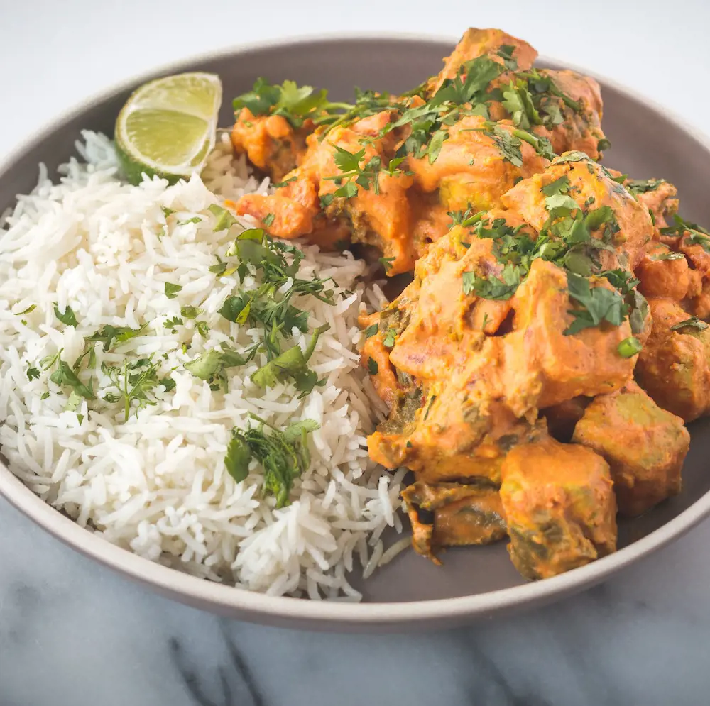 Even though the concept of chicken curry and rice is similar to some other recipes on this list, this dish is distinguished by the aromatic flavors of the traditional curry. This globally beloved dish sees succulent chicken pieces simmered in a rich, fragrant curry sauce crafted with a blend of turmeric, cumin, coriander, and more.