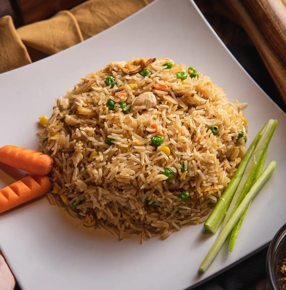 Chicken Fried Rice is a traditional Asian-inspired dish that features tender pieces of chicken with savory fried rice. In this recipe, cooked rice is stir-fried with diced chicken, vibrant vegetables like peas, carrots, and green onions, and seasoned with soy sauce and aromatic spices.