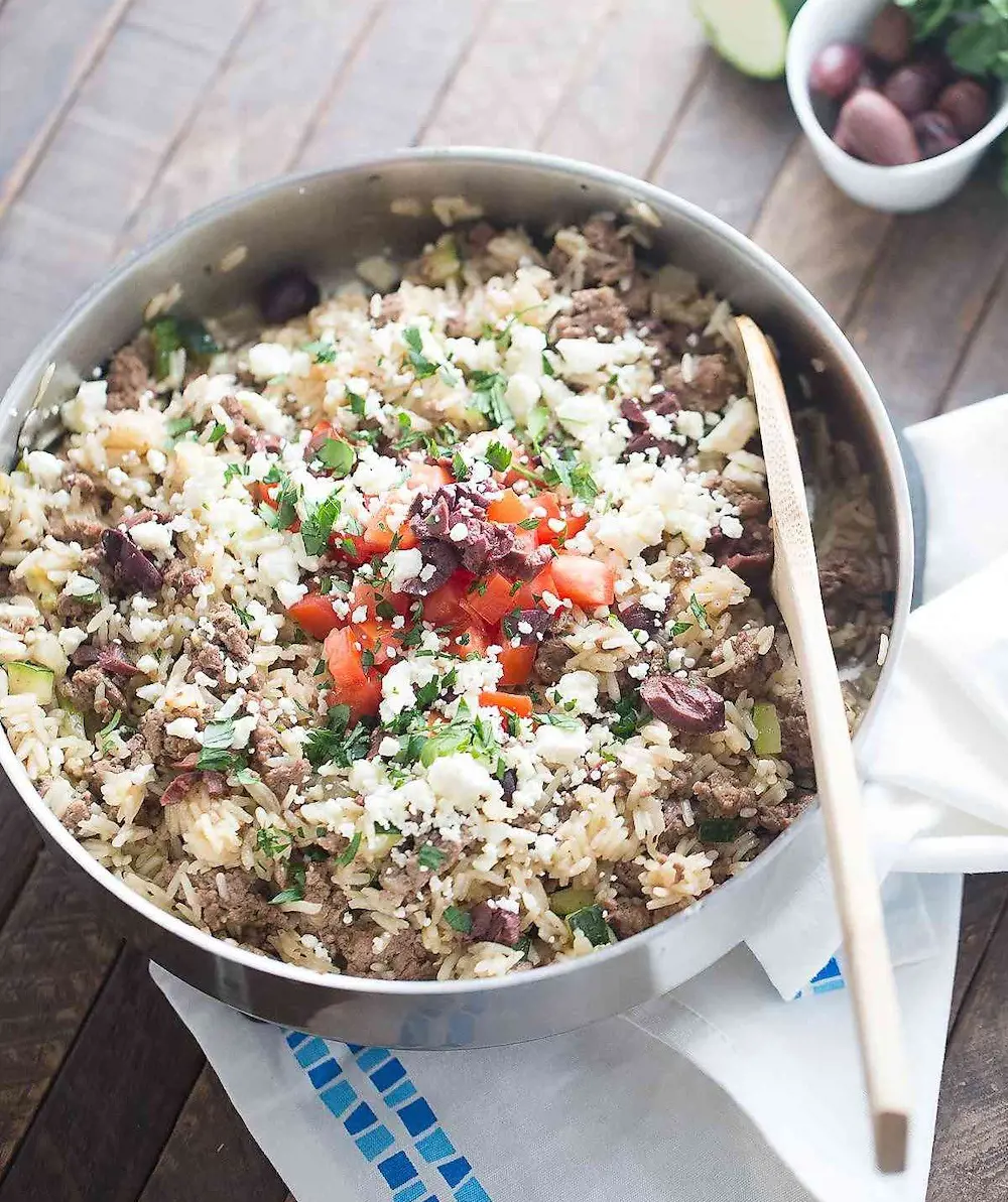 The Greek Gyro Skillet brings the essence of Mediterranean cuisine to your table. This one-pan dish is prepared with tender strips of seasoned gyro meat—often lamb or chicken—with vibrant bell peppers, onions, and tomatoes. The aromatic blend of garlic, oregano, and other Mediterranean spices infuses every bite for a truly savory experience.