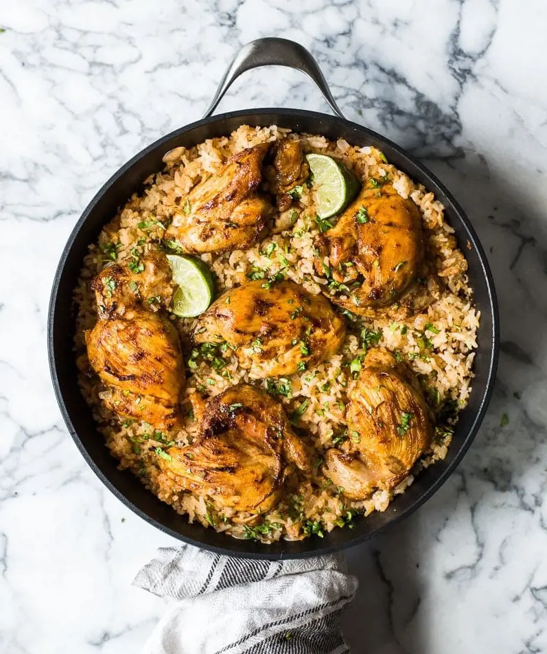 Lime Cilantro Chicken and Rice is more than just a meal; it's a vibrant fiesta of fresh flavors that transports you to a sun-drenched beach. Chicken thighs are cooked with the zesty embrace of lime juice and the vibrant chopped cilantro. Commonly used spices in this dish are cumin and chili powder which provide smoky warmth to the dish.