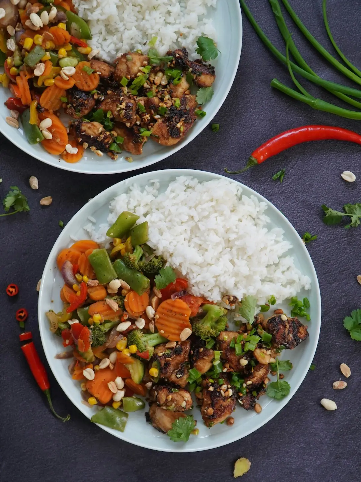 The dish comes to life with the sizzle of the wok, creating a medley of flavors and textures. The chicken adds protein, while the vegetables provide color and freshness. Often garnished with a sprinkle of sesame seeds or a drizzle of sesame oil, it effortlessly blends simplicity with savory indulgence.
