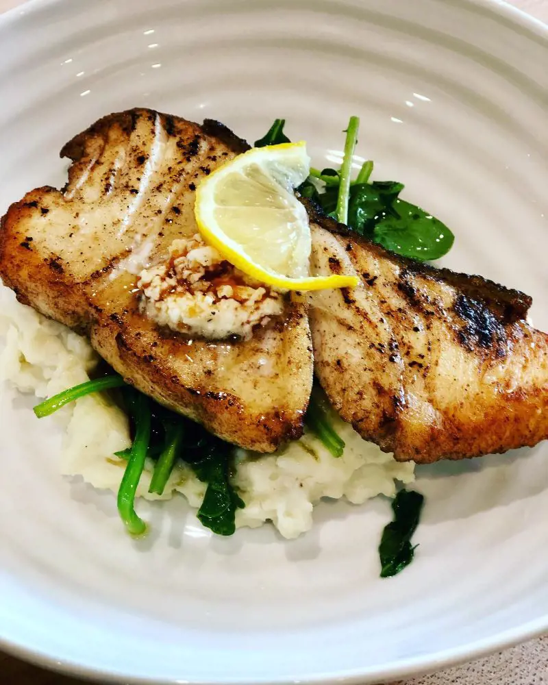 If you're a fan of exquisite flavors, try this Butter Lemon Cod, a dish featuring succulent cod fillets infused with rich butter and zesty lemon. This dish reaches new heights with a refreshing coriander ava stock, providing a burst of aromatic freshness.