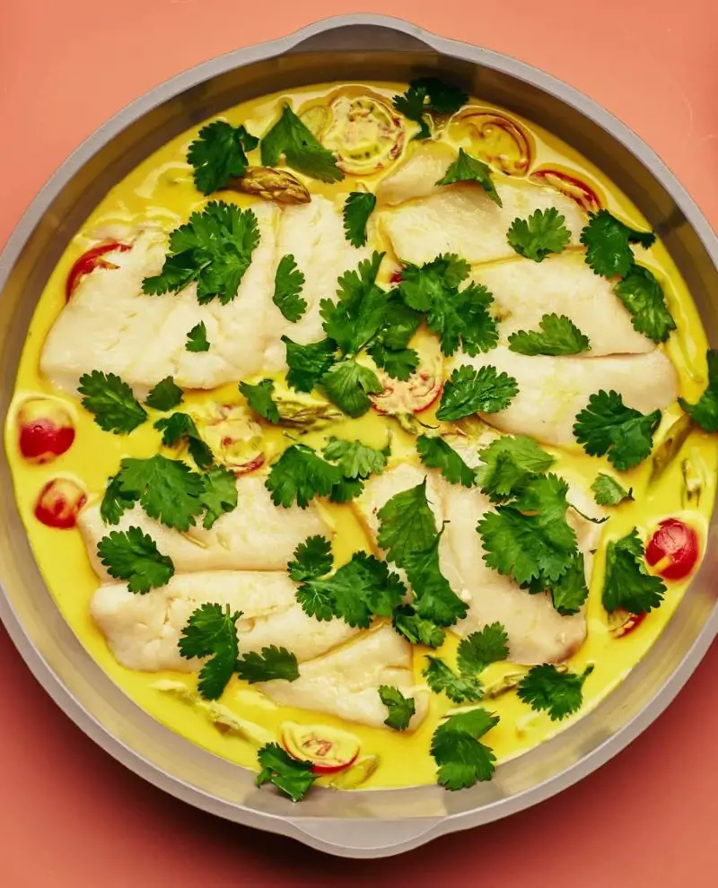 Transforming into a lush and speedy delight, canned coconut milk and bottled yellow mustard combine to create a luxurious sauce for firm whitefish fillets. This recipe draws inspiration from the flavors of Bengali ilish bhapa, celebrating the simplicity of a dish that highlights hilsa, a prized fish in West Bengal and Bangladesh.