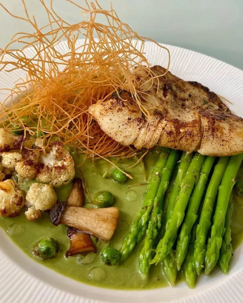 Topped with impeccably steamed and grilled cauliflower and asparagus, the medley of textures and flavors creates a harmonious and satisfying dining experience.