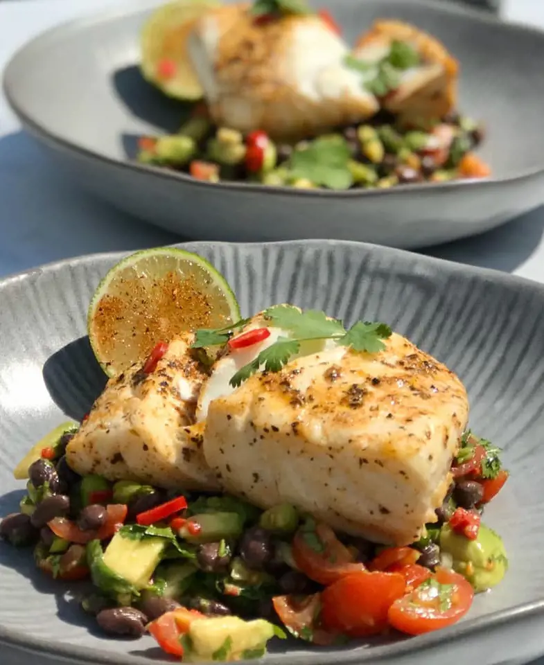In this culinary masterpiece, cod rightfully claims the spotlight, its tender fillets infused with a harmonious medley of bold and aromatic Cajun spices. Enhanced by the vibrant ensemble of black bean and avocado salsa, this dish becomes a symphony of flavors and textures, promising a delightful dining experience.