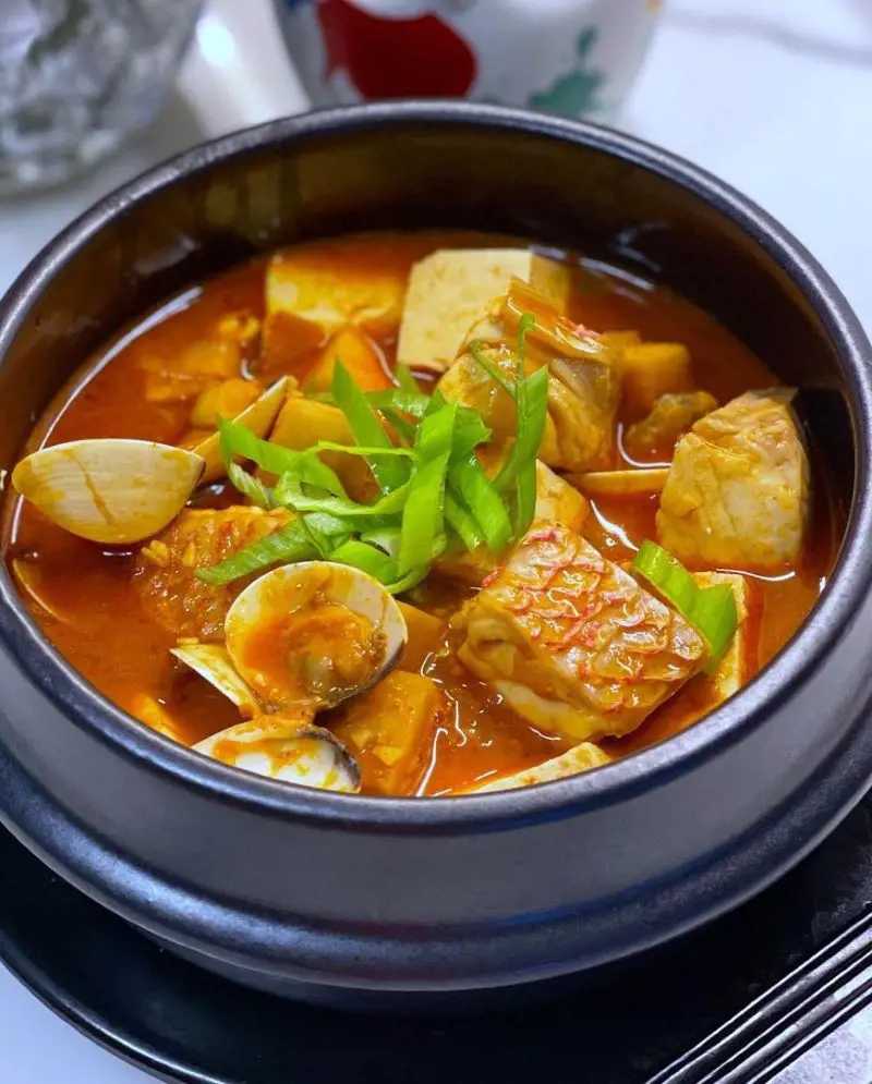 Maeuntang, a beloved dish in Korean cuisine, is a spicy fish stew celebrated for its vibrant flavors. This hot and savory soup is crafted by boiling fresh or saltwater fish, including popular choices like red snapper, sea bass, and codfish, with gochujang (Korean red chili pepper paste), chili powder, and an assortment of vegetables.