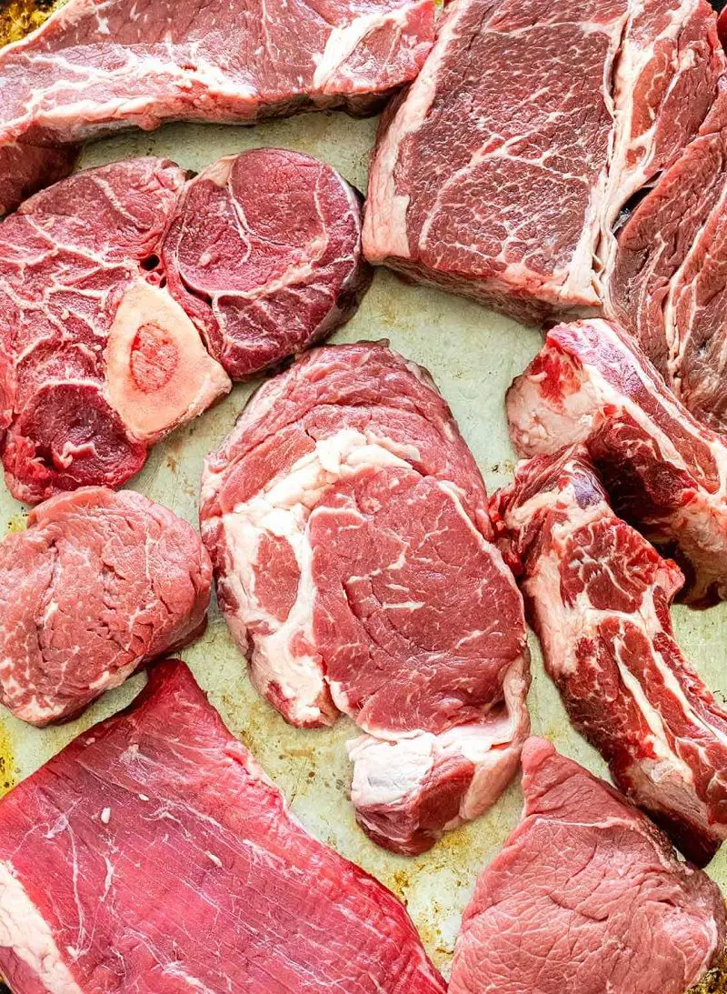 Fatty cuts of meat are higher in saturated fats compared to leaner cuts. These cuts, such as ribeye steaks, pork belly, prime rib, ground beef, and certain pieces of poultry with skin, contain visible marbling and coatings of fat.