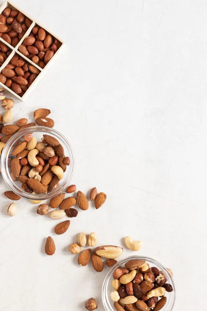 Nuts like almonds, cashews, and walnuts are good choices for periods. Different versions of nuts like fried and salty can be best to satisfy the cravings during your period. Just a handful of these nuts can help reduce period cramps as minerals like magnesium are abundant in them.