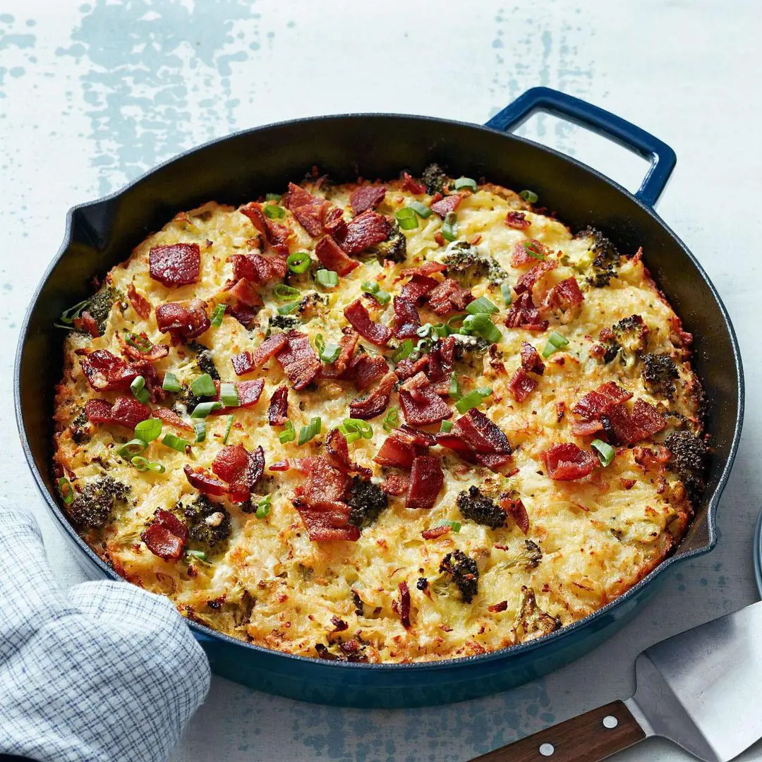 Broccoli and Cheddar Hashbrown Casserole combines shredded or diced hashbrowns with broccoli, cheddar cheese, and other ingredients. This casserole provides a balance of carbohydrates from the hashbrowns, protein from the cheese, and the nutritional benefits of broccoli. It can hence contribute to a well-rounded breakfast.