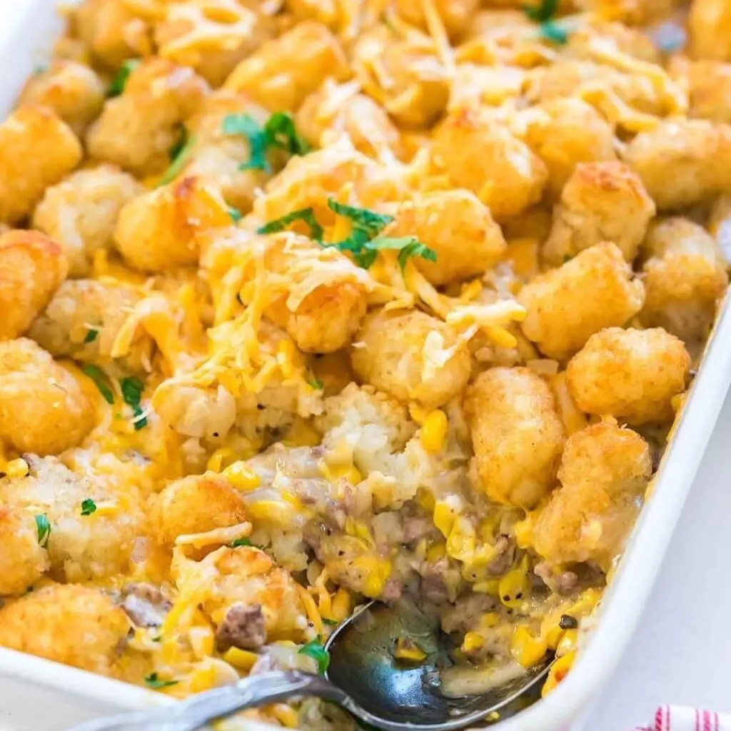 Tater Tot and Sausage Hashbrown Casserole combines the best of both worlds: crispy tater tots with savory sausage. The combination is nestled in a creamy, cheesy sauce and the whole recipe takes minimal time to make.