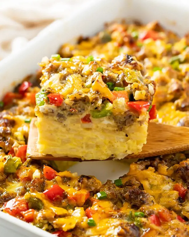A Cheesy Hashbrown Breakfast Casserole is another comforting and flavorful breakfast option. This dish typically features a base of shredded or diced hashbrowns combined with a cheesy and creamy mixture. This recipe is also a part of our classic breakfast casserole recipes that are great for busy mornings.