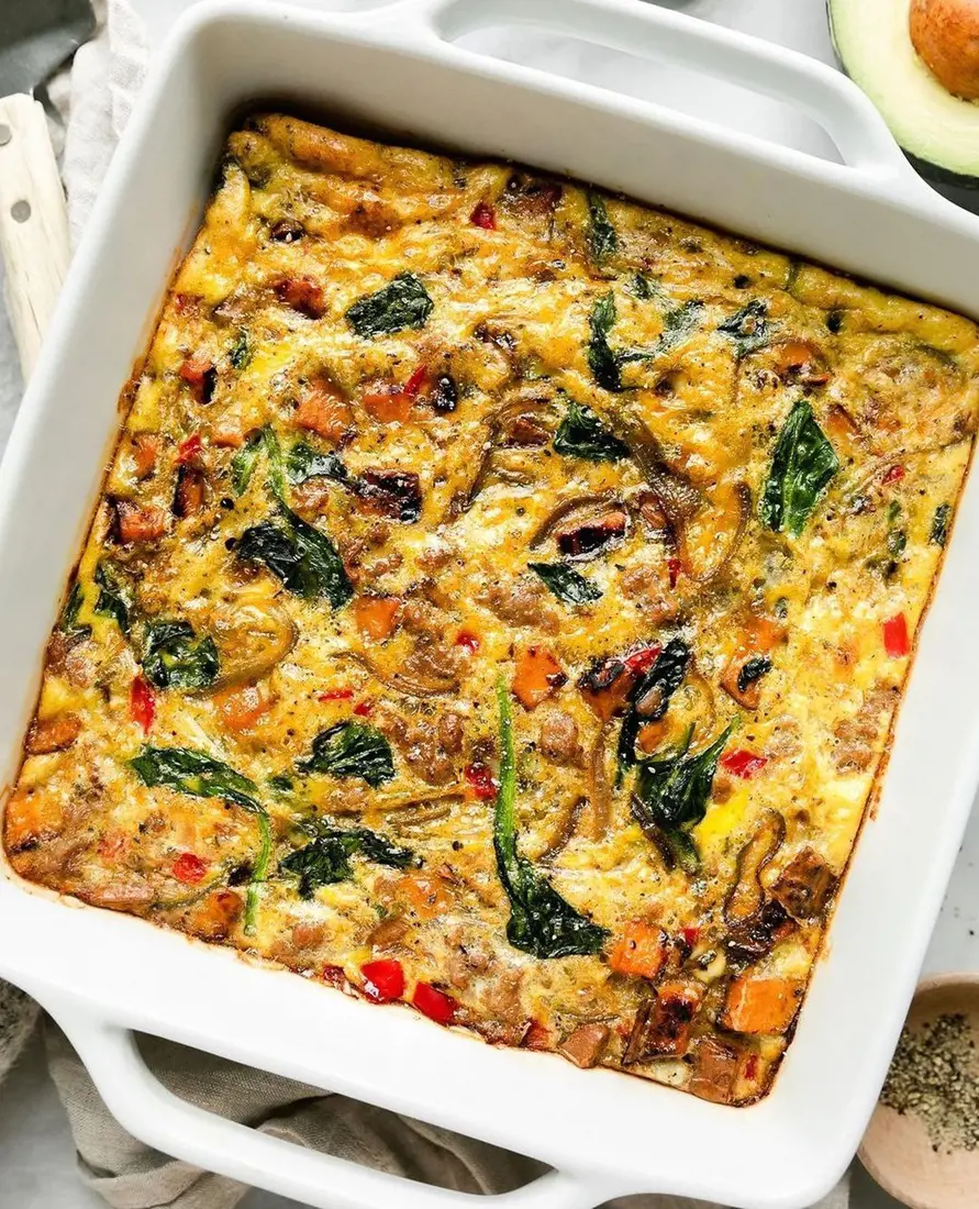 With eggs, feta cheese, and optional additional protein sources, this casserole can be a good choice for individuals looking to increase their protein intake in the morning. Also, vegetable enthusiasts who enjoy incorporating vegetables into their meals can add a generous amount of spinach to this casserole. This makes a flavorful way to add greens to the diet.