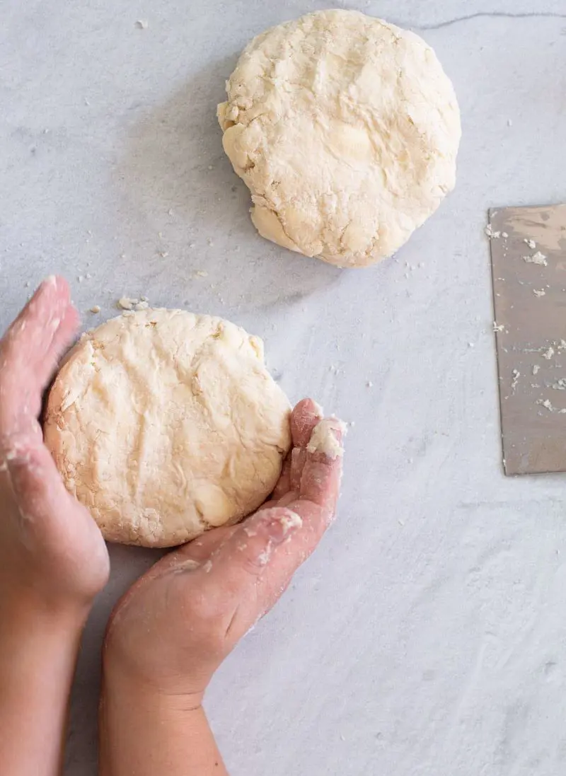 Form the Dough Disk: Turn the dough out onto a lightly floured surface. Gather it into a ball, then flatten it into a disk about 1 inch thick. Wrap the dough disk in plastic wrap and refrigerate for at least 30 minutes (or up to 2 days). Chilling the dough helps keep the fats solid, which is key to achieving a flaky crust.