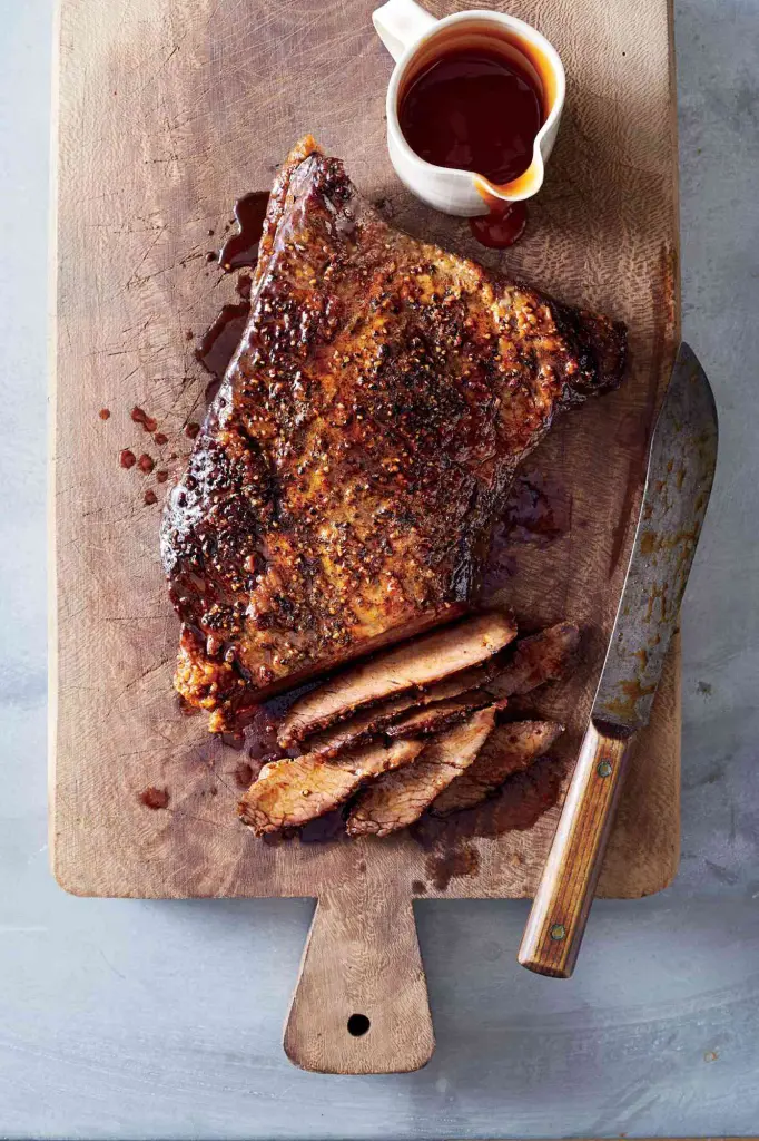A 6-pound point cut is ideal for this recipe. This smaller, thicker piece of brisket boasts more marbling, which means it has a higher fat content interspersed throughout the meat.