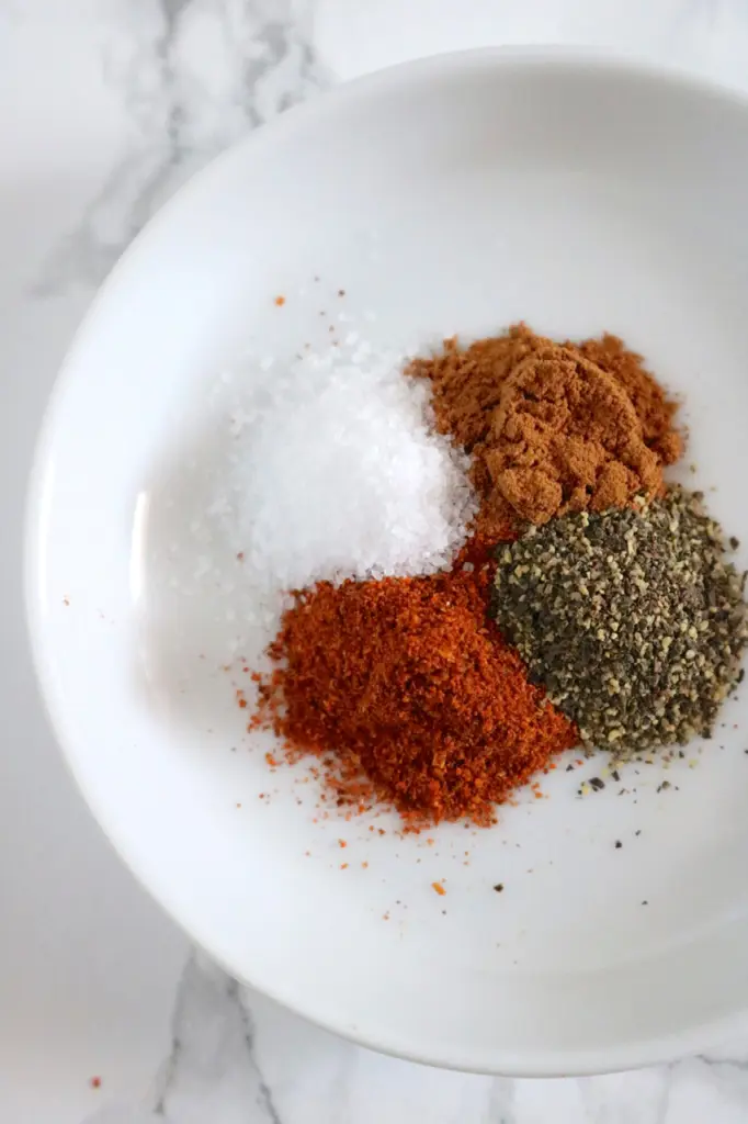 - A typical dry rub might include salt, pepper, paprika, garlic powder, and other spices.