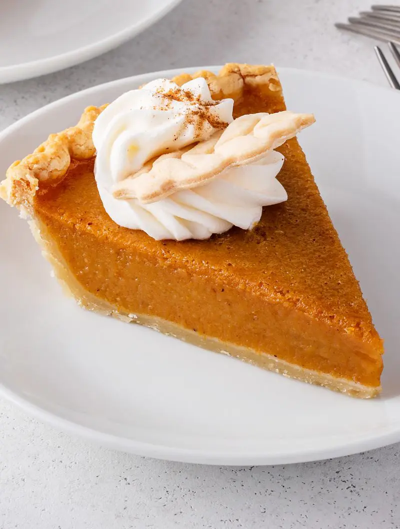 A classic slice of pumpkin pie needs nothing extra - just place it on a dessert plate and dig in! Many people love it straight from the fridge, while others prefer it at room temperature. Either way works great.