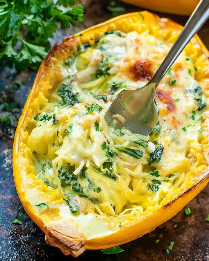 - Stuffed: Similar to the other varieties of squash, you can also stuff your spaghetti squash with minced meat, mushrooms, and even diced veggies. Scoop the inside and fill it with your favorite filling and roast it.