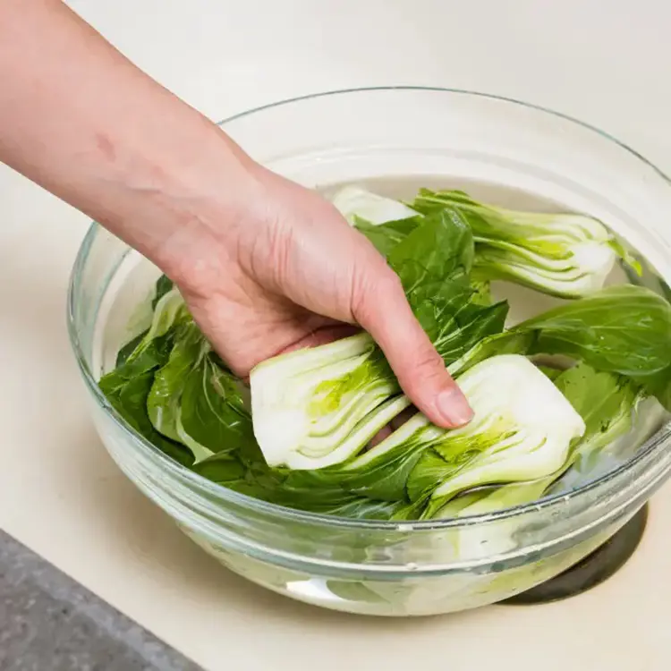 Cool running water should rinse the Bok choy, while gently taking apart its leaves to let any dirt or debris trapped in there be removed. Pay special attention to the base where such dirt often gathers. For additional cleanliness, you can soak it in lukewarm water for some time.