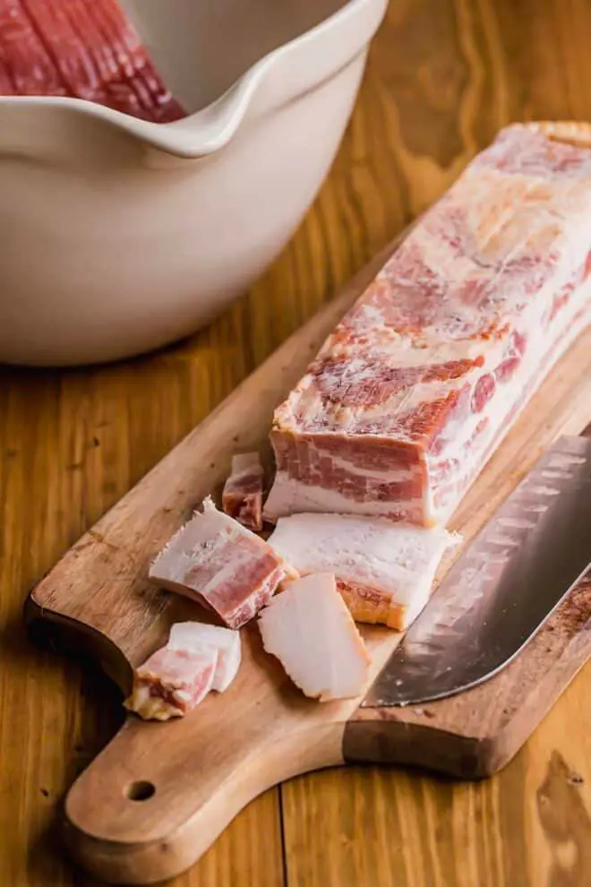 Crumble crispy bacon as a topping for salads, allowing for a crispy and smoky flavor that pairs well with any fresh vegetable and creamy dresser. You can cut a big block of bacon into lardons, which are essentially small, almost cubed pieces of bacon. Bacon lardons can be used for:
