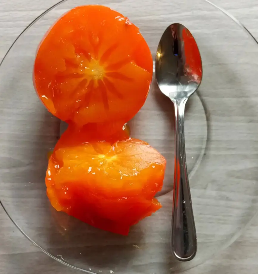 As Hachiya gets soft and squishy, it's time you eat them. As the flesh turns jelly-like during this period, we are about to instruct you on the scooping method for eating this persimmon.