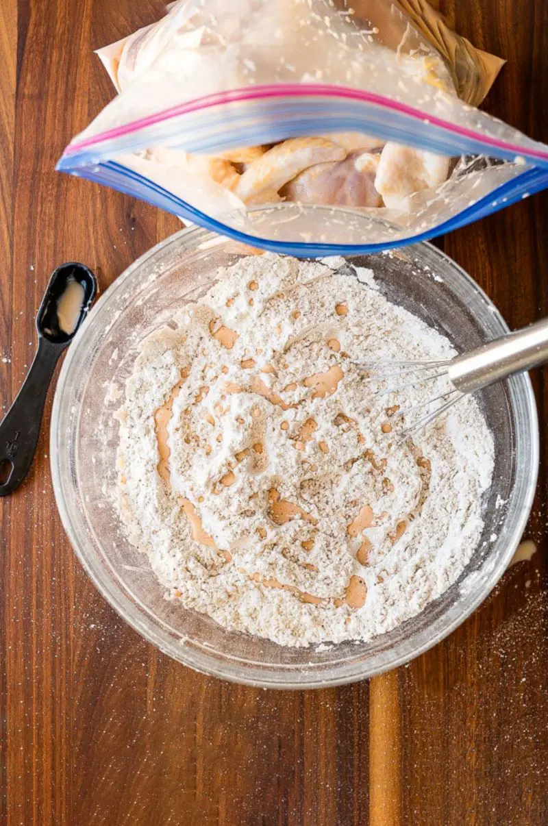 - Craggily bits: Be sure to spoon some of the leftover buttermilk brine to your seasoning mix. Rubbing them together creates the craggily bits. Love them!