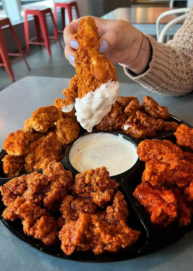 If looking for a simple serving, pair them with cream gravy or any chicken wing dipping sauce. People also love dipping them in maple syrup.