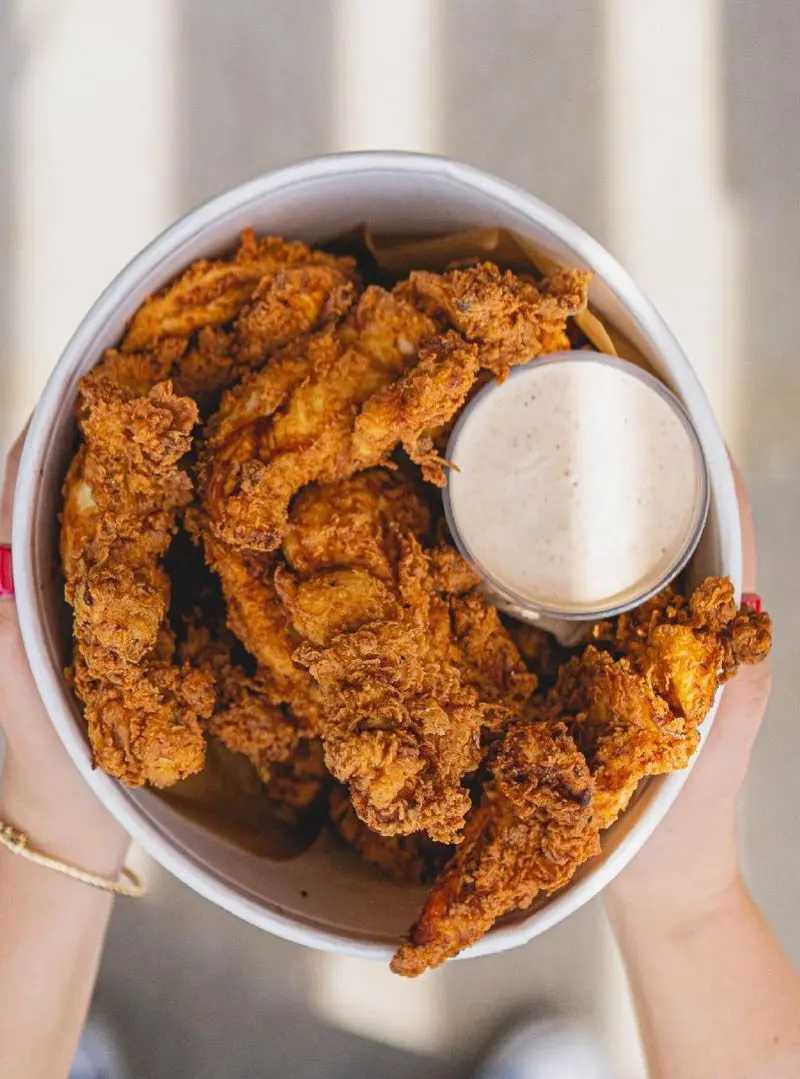 Also, don’t forget the ultimate pairings- fries, mashed potatoes, and some soft, fluffy biscuits. Want some heat? Hot sauce is to the rescue.