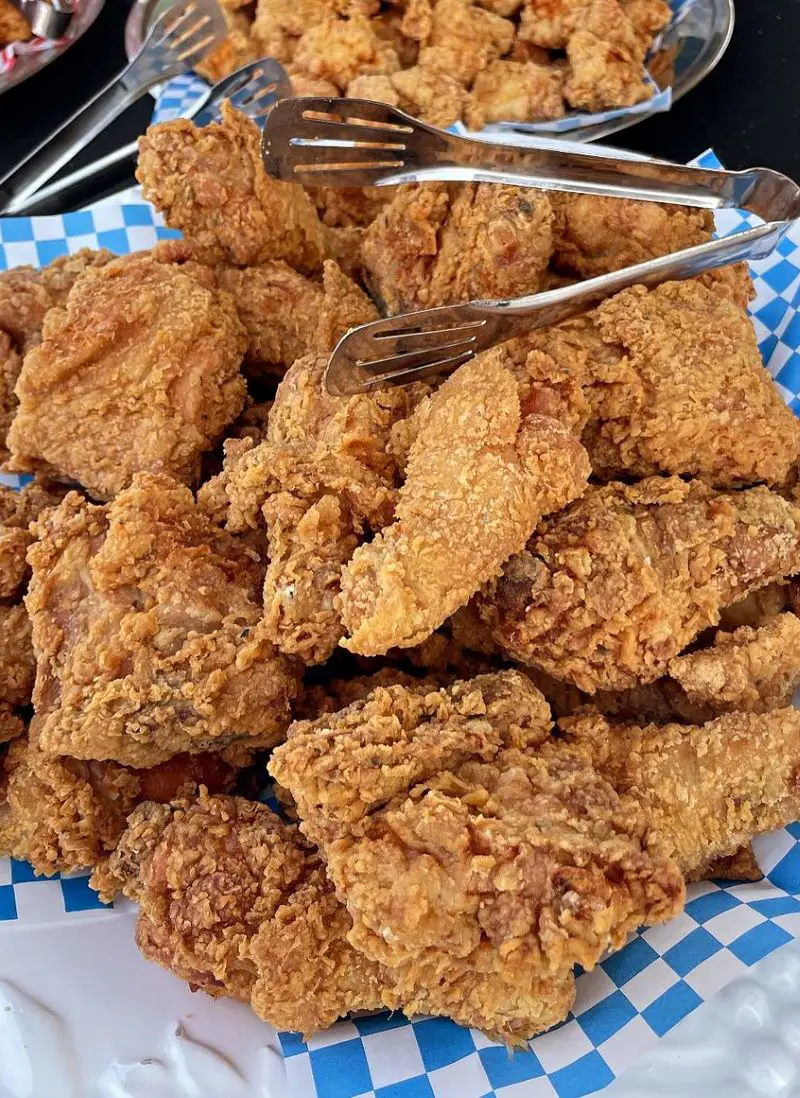- Check for doneness: It is highly effective to use a meat thermometer to check your chicken pieces once done frying. The internal temp should be 165F. Undercooked ones can lead to food poisoning. We don’t want that!