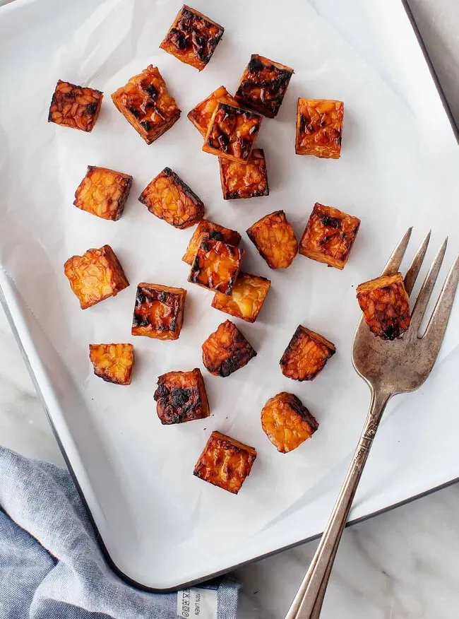 Tempeh is a popular meat alternative made by the fermentation process. These versatile ingredients come with several health benefits and are high in protein, and prebiotics, and have a wide range of essential vitamins and minerals.