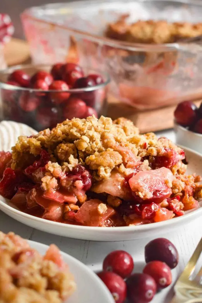 The topping remains classic, with a simple blend of oats, flour, sugar, butter, and a touch of ground ginger, adding a cozy, spiced dimension to the dish. The cranberries and oranges harmonize beautifully with the warm cinnamon and sugary topping. The cranberries also provide a beautiful ruby hue to the dessert, making it a popular choice for a showstopping dessert.
