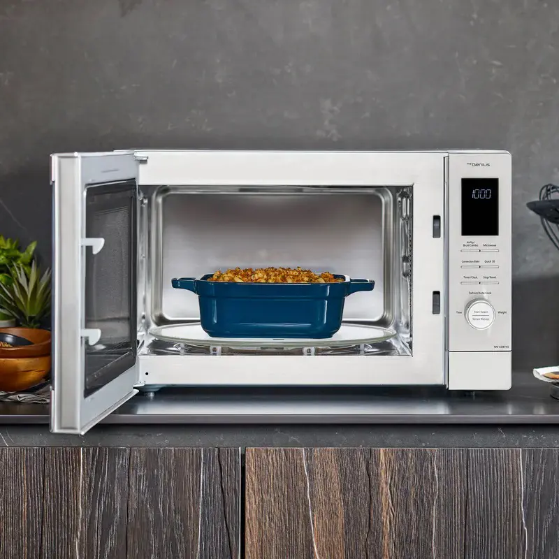 The 4-in-1 functionality comes with microwave, convection, and grill features that can be combined while cooking. The convection oven feature transforms this appliance into a mini oven, allowing you to bake, roast, and brown your favorite dishes.