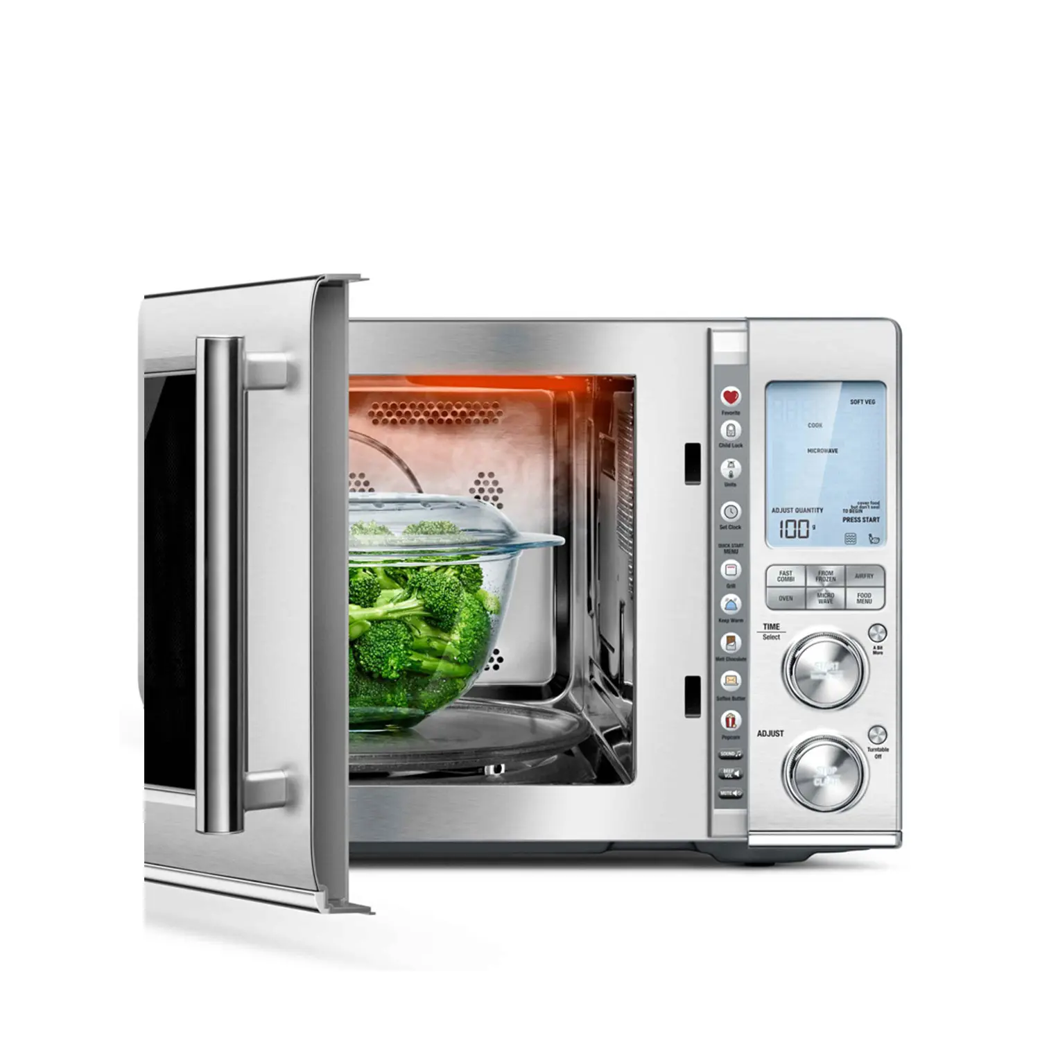 The Sage Quick Touch Crisp Oven & Microwave though small, grills, toasts, and heats with innovative inverter technology. The crisper pan available helps to deliver oven-like reheating in less time.