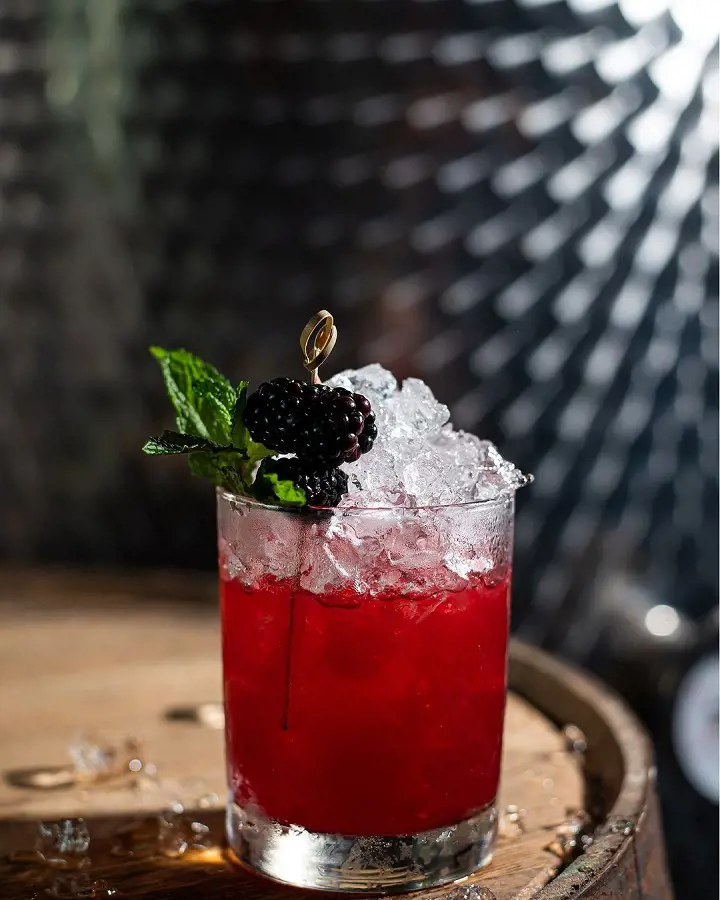 The bourbon adds a rich, deep flavor, perfectly complementing the juicy tartness of the blackberries. A touch of simple syrup adds sweetness, while a dollop of blackberry liqueur atop creates a visually stunning layered effect.
