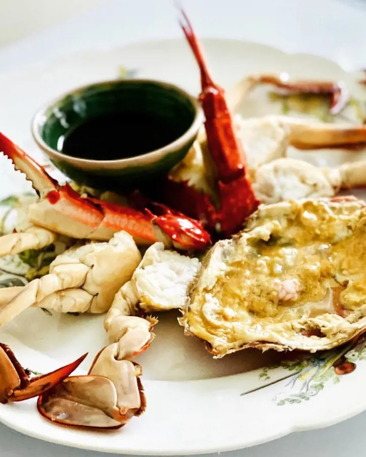 This allows the crab to marinate in its own juices and intensifies the natural sweetness. Before serving, it is splashed with a sweetened ginger dipping sauce made with Chinese black vinegar, sugar, sesame oil, and finely chopped ginger.