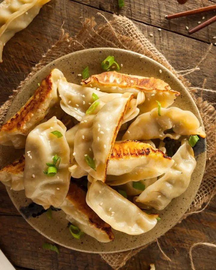 They are eaten all year round, but especially on Lunar New Year because these dumplings are considered a symbol of good fortune. You should eat these pan-fried dumplings with vinegar and chili oil. The tartness and spiciness provide added flavor to the savory dumplings.