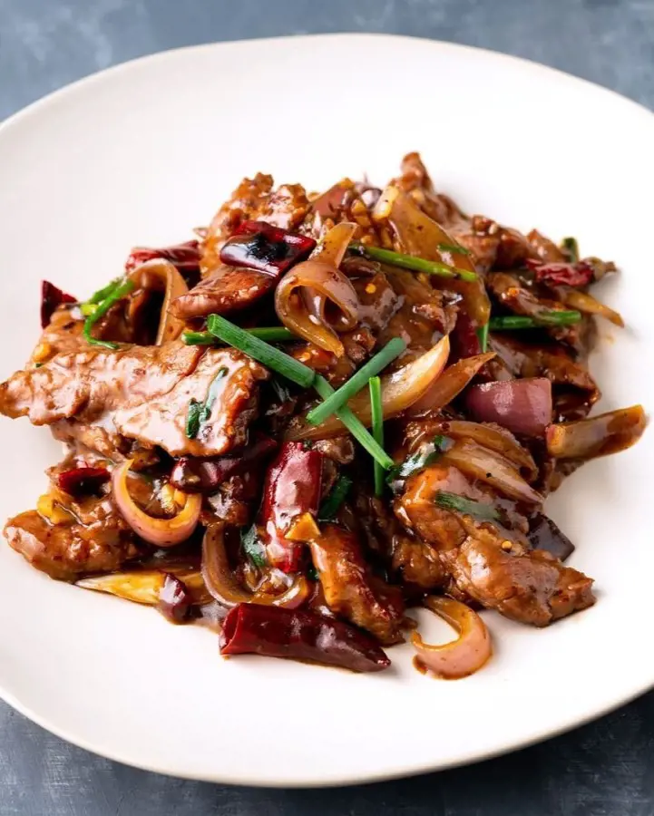 After all, who does not love tender, shallow fried beef tossed in a savory sauce made with soy sauce, Shaoxing wine, brown sugar, garlic, ginger, dried chilies, and scallions. The sauce caramelizes and becomes sticky enough to coat the beef pieces, and with every mouthful, you are hit with flavorful punches.