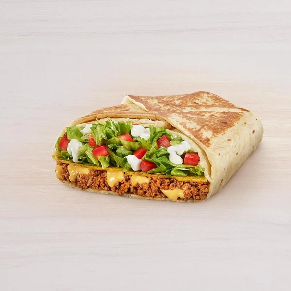 The base of the dish remains the same. What is different is the addition of crispy bacon which adds a smoky and savory element to the wrap. Each strip of perfectly cooked bacon brings a delightful crunch to every bite. Alongside the bacon, you'll find seasoned beef, melted nacho cheese, and a tangy chipotle sauce that elevates the flavor profile to new heights.