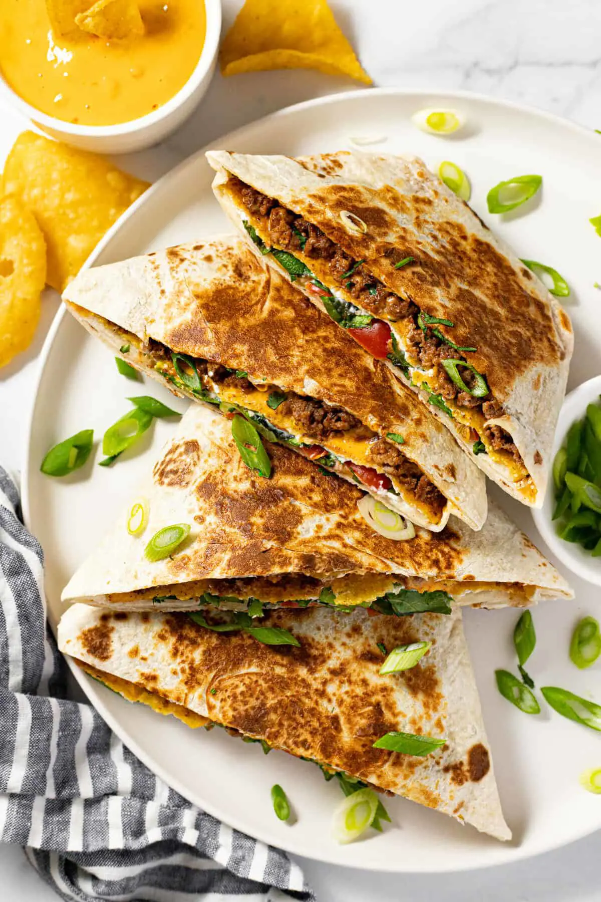 This dish combines the best of both worlds: a classic loaded baked potato and a crispy, flavorful Crunchwrap. It is prepared with a large flour tortilla that is filled with a generous helping of seasoned mashed potatoes. These creamy potatoes are loaded with all the fixings you would find on a traditional loaded baked potato, including crispy bacon bits, tangy sour cream, and a sprinkle of sharp cheddar cheese.