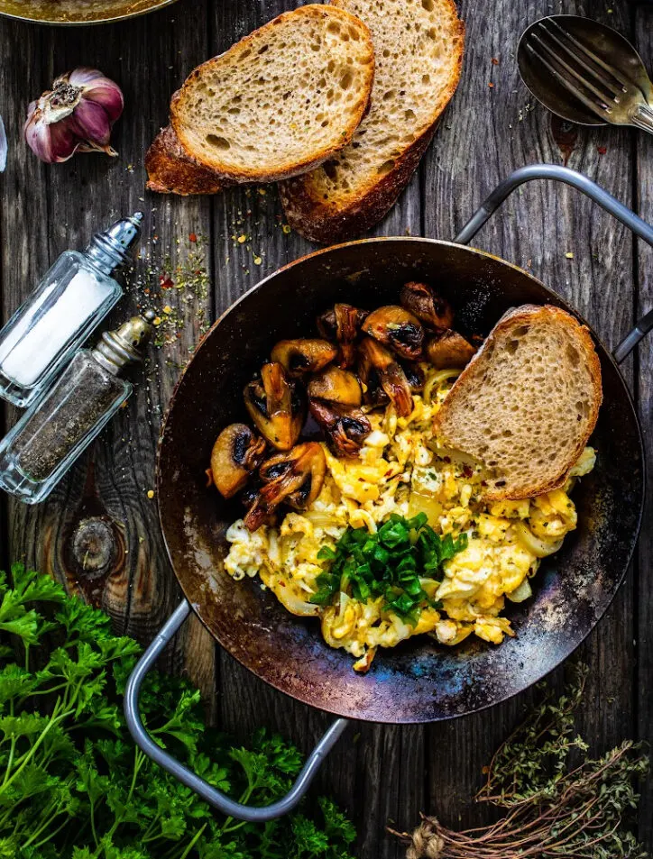 An omelet is possibly one of the easiest breakfast food options for a hectic morning. When spinach and mushrooms are added to the mix, it turns the dish into a complete meal. Fresh spinach brings a touch of green and earthy flavor, while sauteed mushrooms add a savory, umami depth.