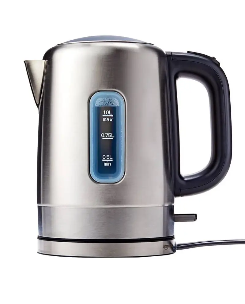 When it comes to quickly boiling water for a cup of tea, the Amazon Basics Stainless Steel Electric Kettle is a top choice. While it lacks settings, including one for keeping water warm, it features a clear water window with marked maximum and minimum fill lines.