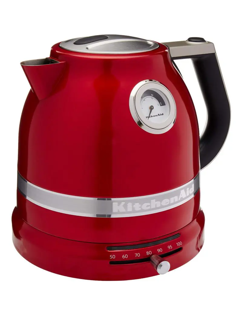 The KitchenAid 1.5-liter Pro Line stands out with its practical features. It includes a sliding adjustable temperature gauge ranging from 50 to 100 degrees Celsius, a keep-warm function, and dual wall insulation, ensuring the kettle remains cool to the touch while retaining heat for an extended period.