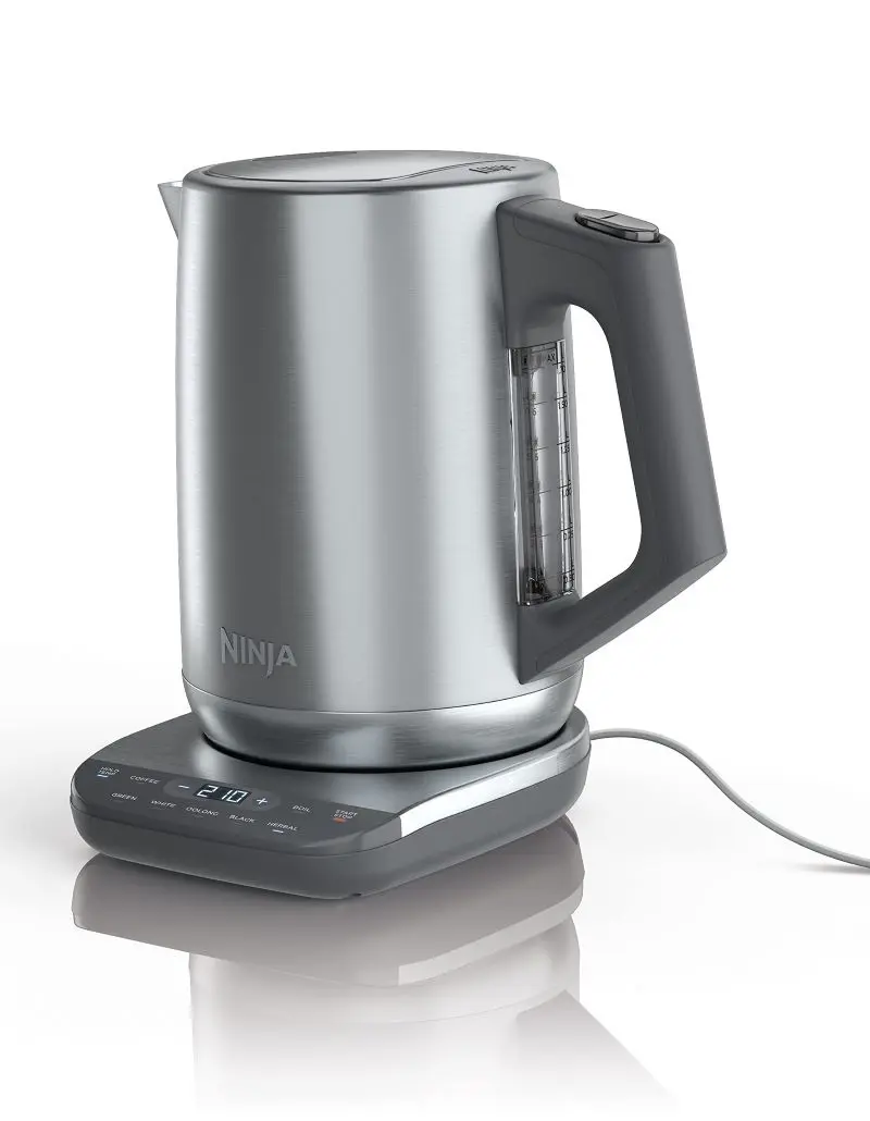 The digital interface of the Ninja kettle is highly user-friendly, allowing manual temperature settings between 105℉ and 212℉ in five-degree increments. It includes presets for coffee and five types of tea, with the digital display smoothly transitioning between the current water temperature and the desired target temperature.