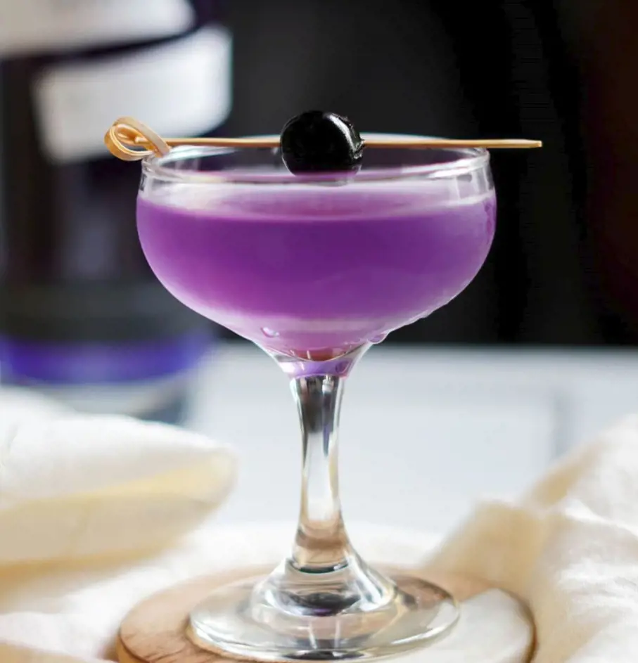The Aviation cocktail is prepared with gin and maraschino liqueur, lemon juice, and violette liqueur for a botanical, floral flavor profile. Dry gin provides a juniper-forward base while lemon adds bright acidity. Maraschino liqueur contributes sweet cherry and almond notes whereas Violette infuses its lovely floral essence and color.