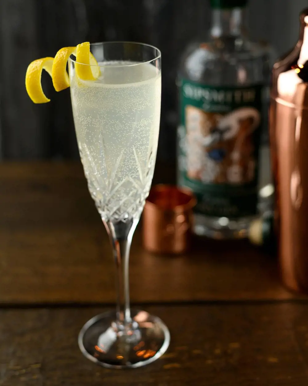 The drink is simultaneously light and sophisticated as it is served in a flute and garnished with a lemon twist. Named after a World War I French artillery gun, this bubbly gin drink is best suited for special occasions.