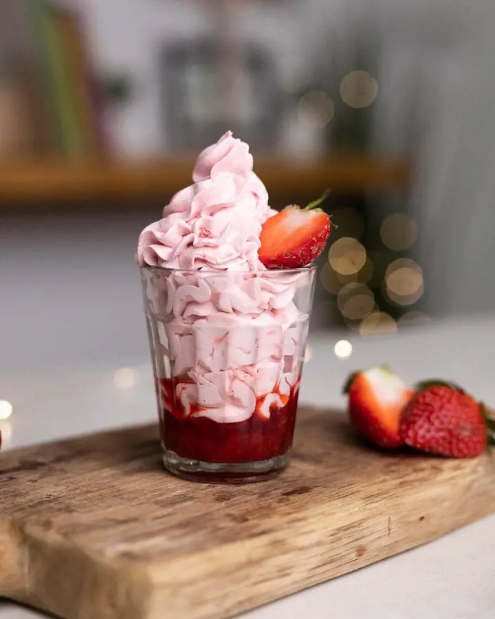 Once the mousse is ready, fold in ingredients like gelatin to prevent the mousse from being runny. Add pureed or chopped strawberries and chill the mousse thoroughly before serving.