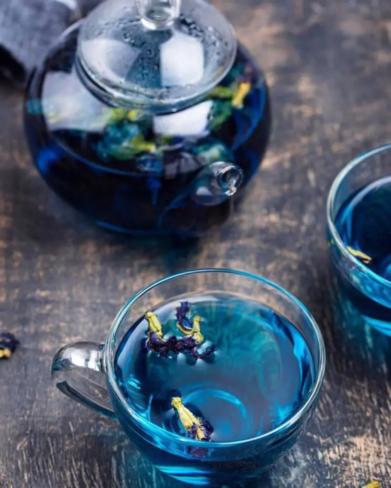 Often referred to as blue tea, butterfly pea flower tea is made from the leaves and flower petals of the clitoria ternatea plant, commonly cultivated in Southeast Asia. When steeped as a tea, butterfly pea flower unfolds a striking shade of blue.