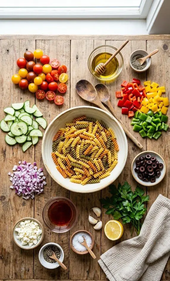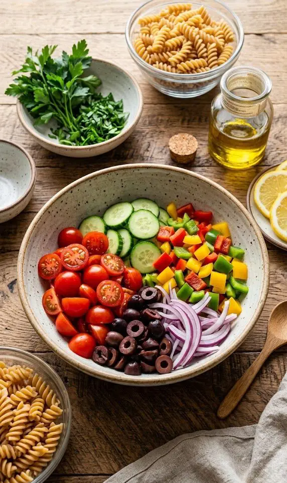 The freshness of your ingredients defines the taste of your pasta salad. Focus on vibrant vegetables, herbs, and proteins: