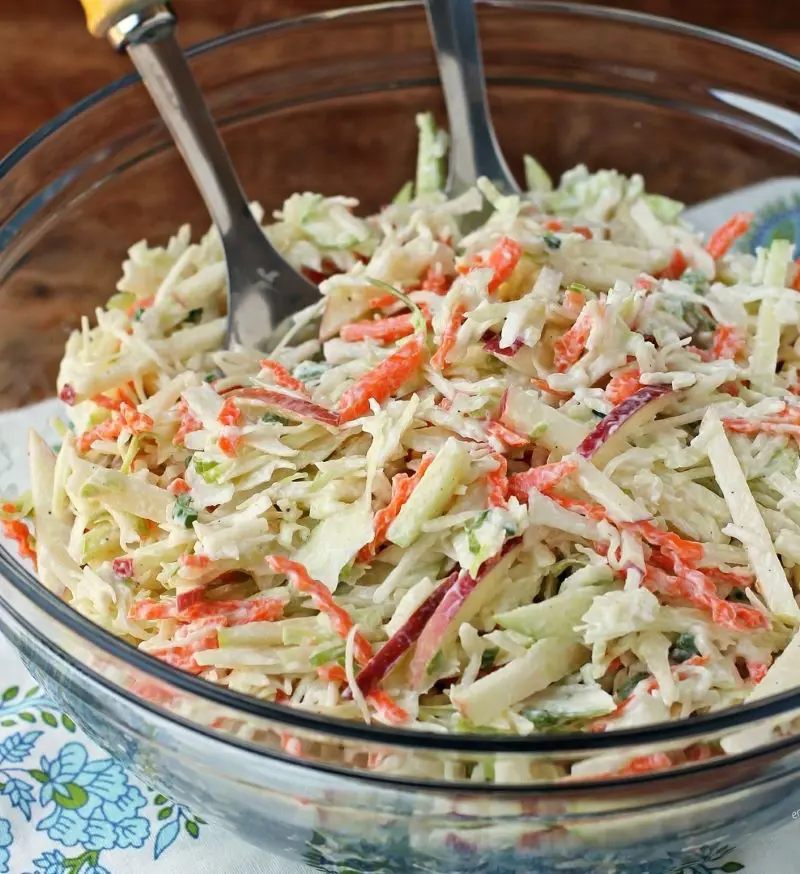 This calls for the use of various green vegetables- cabbage, carrots, and cucumber. That means it is filled with several healthy nutrients. So serving coleslaw with chili becomes a healthy and tasty meal. Feel free to customize the veggies in coleslaw and prepare a bowl with the desired greens.