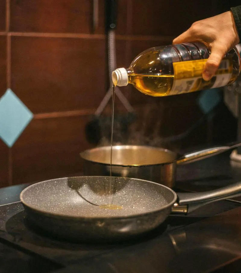 Oil adds moisture to the pan as a result prevents the burning or sticking of ingredients. Use olive oil for that. If it is not in stock, feel free to use any vegetable oil that is accessible.